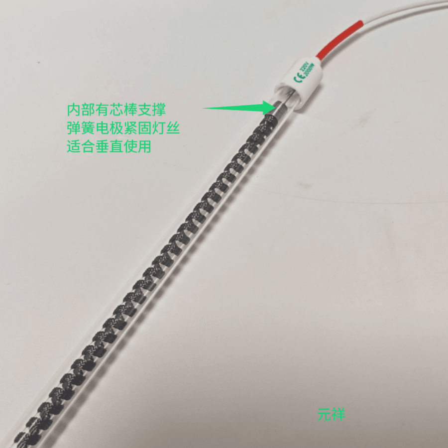 结构:将一束或多束长长的碳纤维丝像弹簧一样螺旋状缠绕在小石英管上。两头通过钼丝弹簧电极牢牢固定,确保灯丝不会松动变形。