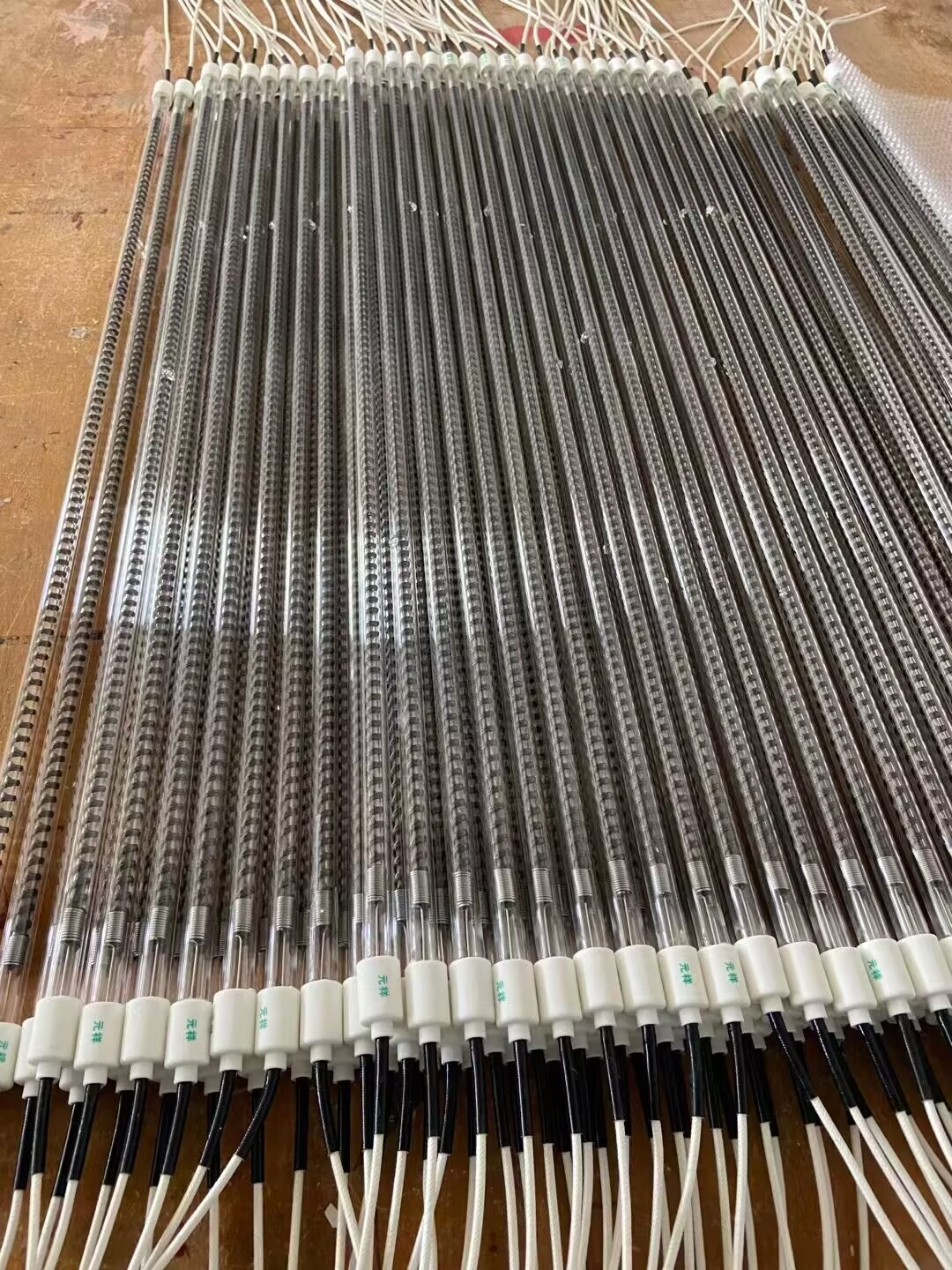 我公司的碳纤维加热管,内部采用芯棒支撑,灯丝附着在芯棒上,排列均匀,不会变形,不仅满足水平放置使用,还可以垂直使用。